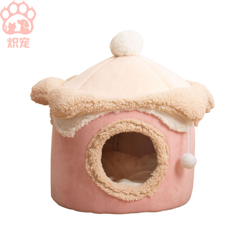 秋冬暖かい犬のベッド新しい環境に優しい猫の巣形アイスクリームハウスかわいいプリンセスペットベッドコーデュロイ草小さなPP